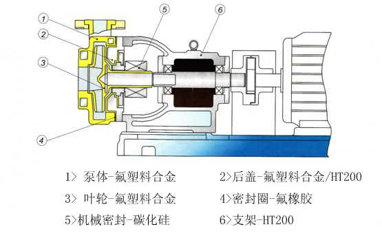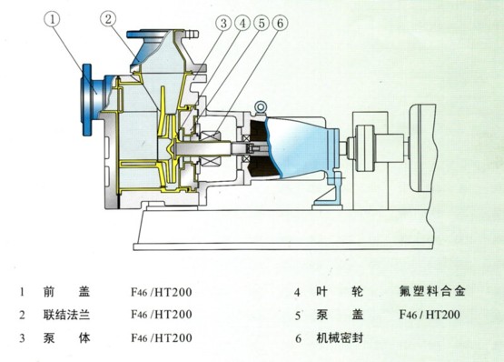 IHF襯氟離心泵按國家標(biāo)準(zhǔn)設(shè)計(jì);泵體采用先進(jìn)的生產(chǎn)工藝以金屬外殼緊襯氟塑料(F46)制造,泵的承重部分為金屬材料具有機(jī)械強(qiáng)度高、耐壓性強(qiáng)、抗機(jī)械沖擊力優(yōu)越等優(yōu)點(diǎn);主要過流部件葉輪、泵蓋等均采用金屬嵌件外包氟塑料一次性高溫模壓而成;配置外裝式金屬波紋管機(jī)械密封,對磨材質(zhì):氧化鋁VS四氟、碳化硅VS四氟、硬質(zhì)合金VS硬質(zhì)合金,用戶可根據(jù)工況要求選擇對磨付。