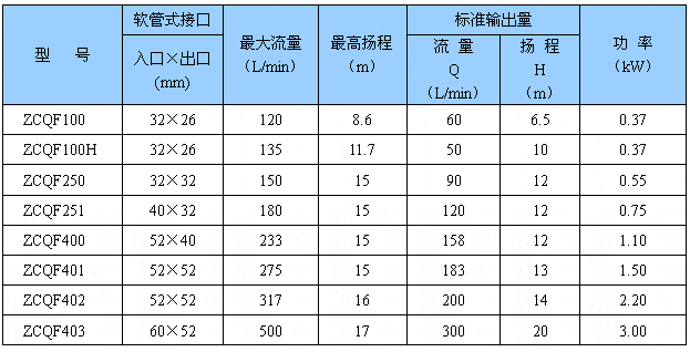 2、ZCQF型系列四氟耐腐蝕自吸泵即有CQF型磁力驅(qū)動(dòng)泵的功能,又集自吸于一身,不需底閥和引灌水,具備了自吸性能好,自吸 時(shí)間短,效率高,并能在無液的情況下而空載運(yùn)轉(zhuǎn),自吸高度4米,因此它具有良好的抗腐蝕性能,并可以使輸送介質(zhì)免受污染。