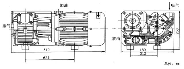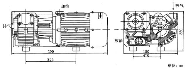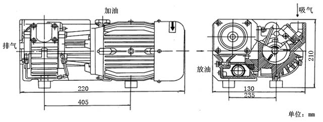 XD型單級旋片式真空泵結構圖及安裝尺寸圖