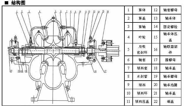 S、SH型單級雙吸大流量農(nóng)田灌溉排水泵結(jié)構(gòu)圖: