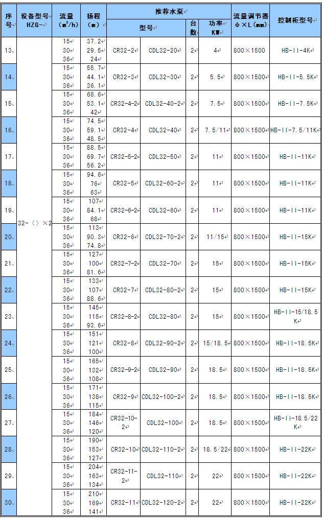 “HZG無(wú)負(fù)壓直接式變頻供水設(shè)備”主要指標(biāo)如下: