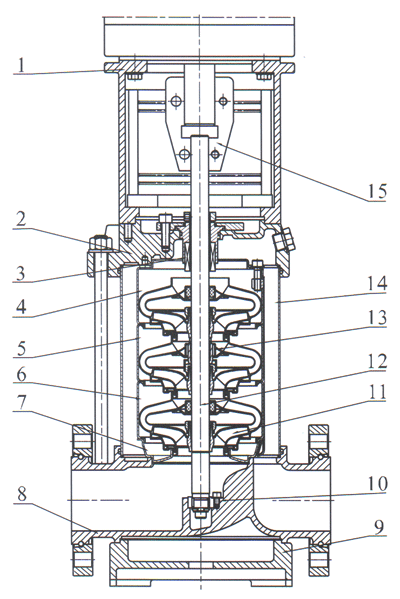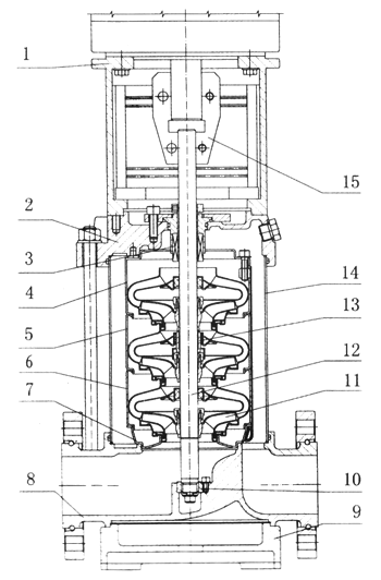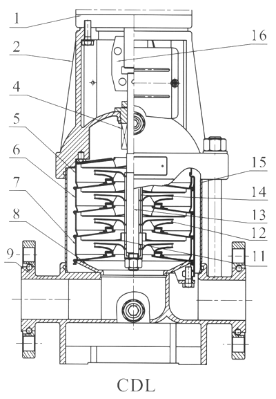 CDLF32,42,65,85立式不銹鋼衛(wèi)生多級泵產(chǎn)品結構圖