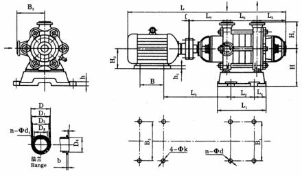 DG、DF、DY型泵出口法蘭安裝尺寸表