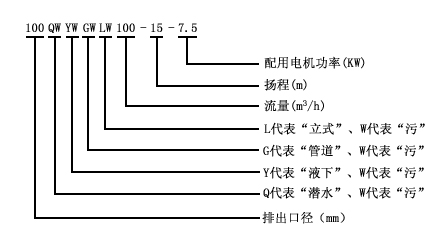 三、WQK/QG型系列切割潛水排污泵型號(hào)意義