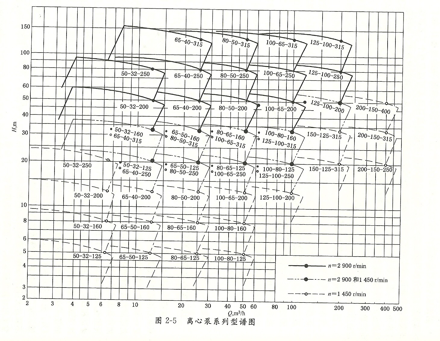 按一定的問隔比變化。圖2 5是某型離心泵的系列型譜圖。
