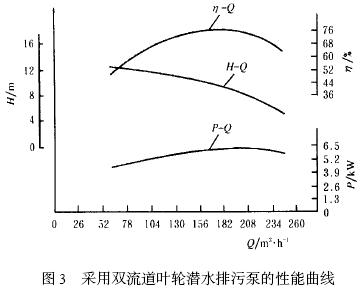 4) 雙流道葉輪的效率高, 高效區(qū)寬, 額定工況點(diǎn)泵的效率比CJ/T 303821995 標(biāo)準(zhǔn)的規(guī)定值高13. 04%。