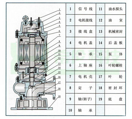 WQ型系列無堵塞潛水排污泵解剖圖: