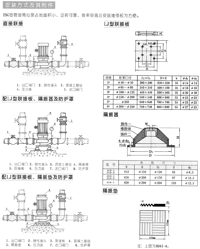 (4)ISG型管道離心泵與同一指標的往復泵相比,結構簡單緊湊、體積小,重量輕、零部件少,制造方便、造價低、而且占地面積小,因此它的設備和修理費用都較低廉。