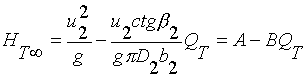 上圖表示了HT∞與QT的線性關(guān)系,斜率隨著β2變,后彎葉片的HT∞--QT的關(guān)系曲線稱為離心泵的“理論特性曲線”。
