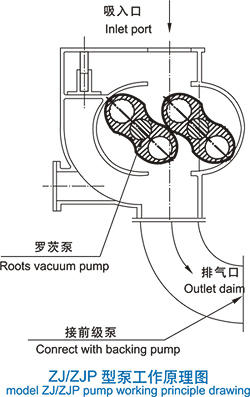 羅茨真空泵主要由一對(duì)同步高速旋轉(zhuǎn)的“8”字形轉(zhuǎn)子與兩個(gè)半圓形的泵腔組成。該泵不能單獨(dú)排氣,必須與前級(jí)泵(如滑閥泵、旋片泵、水環(huán)泵、油環(huán)泵等)串聯(lián)使用。在前級(jí)泵進(jìn)氣口前面串聯(lián)上羅茨真空泵組成機(jī)組可提高前級(jí)泵的真空度,在有效范圍內(nèi)可大大提高抽氣速率。羅茨真空泵的極限壓力由前級(jí)泵決定,表中數(shù)據(jù)為標(biāo)準(zhǔn)配置(配用雙級(jí)油封式機(jī)械真空泵)時(shí)的低極限壓力。羅茨泵廣泛使用于真空澆鑄、真空熔煉、真空脫氣、真空鍍膜行業(yè)及化工醫(yī)藥行業(yè)的真空蒸餾、真空干燥等。泵對(duì)小量灰塵不敏感。 本公司羅茨真空泵經(jīng)過10余年不斷改進(jìn),有以下優(yōu)點(diǎn): ●因轉(zhuǎn)子采用高精度專用數(shù)控機(jī)床加工,并作精細(xì)平衡校驗(yàn),具備良好的幾何對(duì)稱性,轉(zhuǎn)子嚙合間隙均勻。泵體、側(cè)蓋采用專用機(jī)床加工,精度高。因此本公司羅茨真空泵運(yùn)轉(zhuǎn)平穩(wěn)、噪聲低、振小、極限真空度高。 ●因泵的傳動(dòng)部件采用可靠的消隙結(jié)構(gòu),故泵可高壓差下長(zhǎng)期工作。 ●起動(dòng)快,能在短時(shí)間內(nèi)達(dá)到極限真空。 ●因泵腔內(nèi)無(wú)互相滑動(dòng)的零件,無(wú)需用油潤(rùn)滑,避免了油蒸汽對(duì)系統(tǒng)的污染。 ●安全可靠,ZJP系列本身配帶溢流閥起自動(dòng)保護(hù)作用。 ●結(jié)構(gòu)緊湊,占地面積小。左、右、下面三個(gè)排氣口可以任選一個(gè),方便用戶安裝。