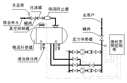 無負壓管網(wǎng)增壓穩(wěn)流成套供水設(shè)備工作原理圖