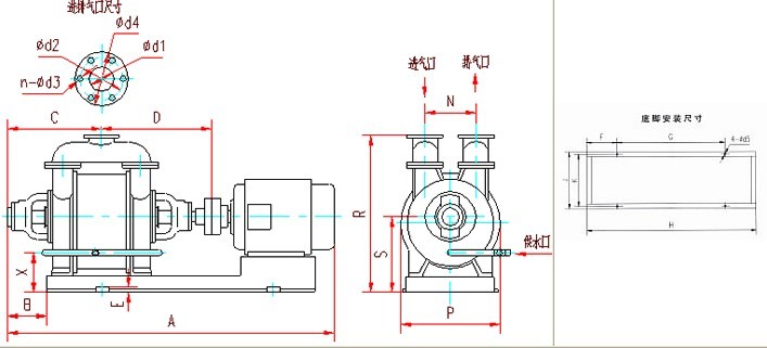 SK型水環(huán)式真空泵的安裝尺寸圖: SK型水環(huán)式真空泵在安裝前,先用水轉(zhuǎn)動一下聯(lián)軸器,以證實SK型水環(huán)式真空泵內(nèi)是否卡住及其它損壞現(xiàn)象。整套設(shè)備動抵安裝地點時,包裝已損壞或在存放時受潮濕,以及SK型水環(huán)式真空泵在出廠八個月后再行安裝使用時,應(yīng)在安裝前全部拆開檢查修理。如果真空泵或壓縮機運轉(zhuǎn)正常,將SK型水環(huán)式真空泵安裝在泵座上。電動機固定在泵座上以前,應(yīng)校正電機軸與泵軸的同心度,因為電動機軸與泵軸即使是極小的傾斜也會引起軸承發(fā)熱和零件的磨損等后果。將直尺平行放在聯(lián)軸器上,在整個圓周的任何位置都與聯(lián)軸器圓周密合沒有間隙,且聯(lián)軸器的軸向間隙都相等時,則達到了所要求的SK型水環(huán)式真空泵同心度(如圖)。 | ||||||||||||||||||||||||||||||||||||||||||||||||||||||||||||||||||||||||||||||||||||||||||||||||||||||||||||||||||||||||||||||||||||