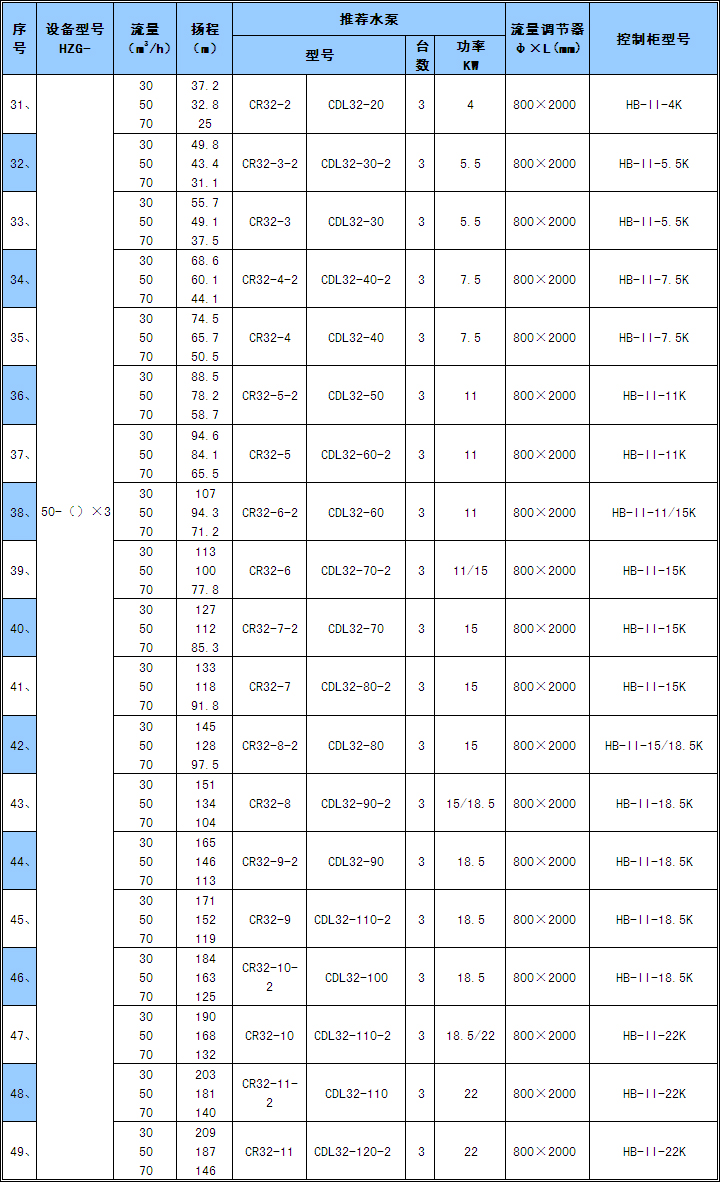 1) 表中的流量均按實(shí)際大用水量設(shè)計(jì),設(shè)備型號(hào)為常用推薦型號(hào),也可根據(jù)顧客實(shí)際情況和特殊要求另行設(shè)計(jì)。