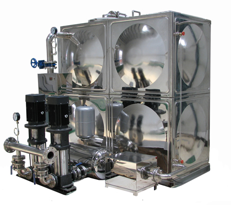 箱式無負(fù)壓供水設(shè)備是在組合式不銹鋼水箱和變頻恒壓供水的基礎(chǔ)上開發(fā)研制的,并加裝防負(fù)壓、防倒流、防水質(zhì)惡化等控制裝置。該設(shè)備與普通的變頻供水設(shè)備和無負(fù)壓供水設(shè)備相比,具有節(jié)能顯著、噪音低、占少、可靠性高等優(yōu)點(diǎn),是目前先進(jìn)的供水模式。箱式無負(fù)壓供水設(shè)備能夠和市政管網(wǎng)串接,確保對(duì)市政管網(wǎng)不產(chǎn)生負(fù)壓,在用水高峰期間,通過微機(jī)控制變頻調(diào)節(jié)水泵能將密閉水箱中的水增壓,避免了因市政管網(wǎng)供給不足的用戶所需給水的流量。