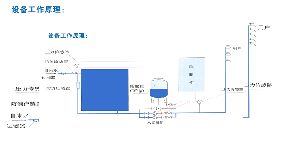 3.運(yùn)行可靠性:當(dāng)用水高峰時(shí),或自來水停水時(shí),由水箱供水,大大提高用戶用水的可靠性,完全符合自水供水規(guī)范。