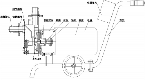 移動(dòng)式果汁飲料,酒類,醬油及醫(yī)藥,石油化工等近似水類液體的輸送自吸泵結(jié)構(gòu)示意圖