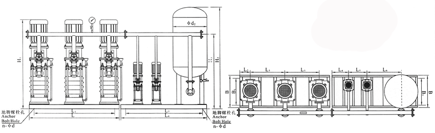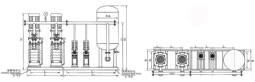 自動(dòng)變頻恒壓成套生活給水設(shè)備安裝尺寸參考圖